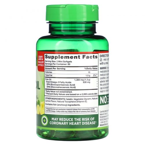 Описание товара Nature's Truth, Рыбий мини-жир, премиальная сила действия, лимон, 650 мг, 100 мягких таблеток