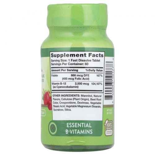 Описание товара Nature's Truth, Vitamin B-12 plus Folic Acid, Natural Berry, 2,500 mcg, 60 Fast Dissolve Tablets