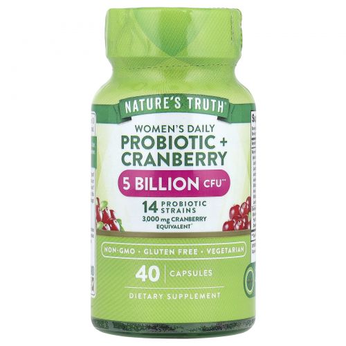 Описание товара Nature's Truth, Women's Probiotic + Cranberry, 40 Vegetarian Capsules