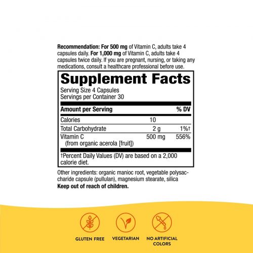Для получения 500 мг витамина С принимайте по 4 капсулы в день. Для получения 1000 мг витамина С принимайте по 4 капсулы два раза в день.