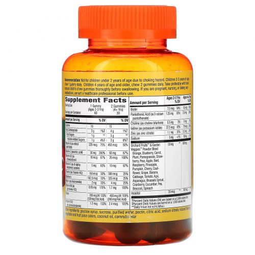 - Порошковая смесь Orchard Fruits™ и Garden Veggies™ (100 мг в 2 конфетах)