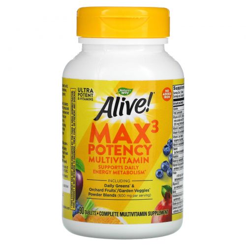 Описание товара Nature's Way, Alive! Мультивитамины Max3 Daily без добавления железа, 90 таблеток