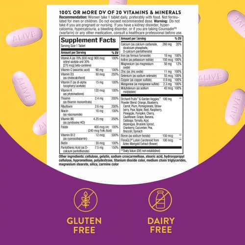 Наслаждайтесь напряженными днями и наслаждайтесь счастливыми моментами вместе с Alive! Энергетические мультивитамины для женщин. Этот высокоэффективный мультивитамин содержит 100% суточную норму 20 незаменимых витаминов и минералов, включая бор и лютеин. Кроме того, он содержит высокоэффективные витамины группы B для поддержания ежедневной клеточной энергии. Убедитесь, что вы получаете только самое лучшее, даже когда жизнь сходит с ума.