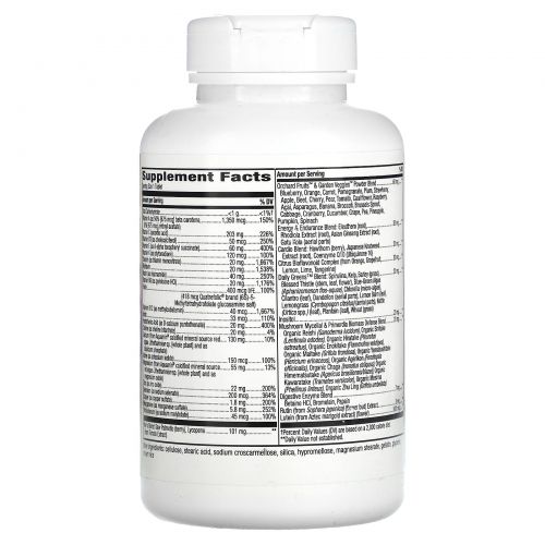 | Смесь Daily Greens ™: спирулина, водоросли, ячмень (трава), чертополох (стебель, лист, цветок), сине-зеленые водоросли (Aphanizomenon flos-aquae), хлорелла, кинза (листья), одуванчик (надземные части), мелисса ( лист), лемонграсс (Cymbopogon citratus) (надземные части), крапива (виды Urtica) (листья), подорожник (листья), пшеница (трава) | 20 мг | ** |