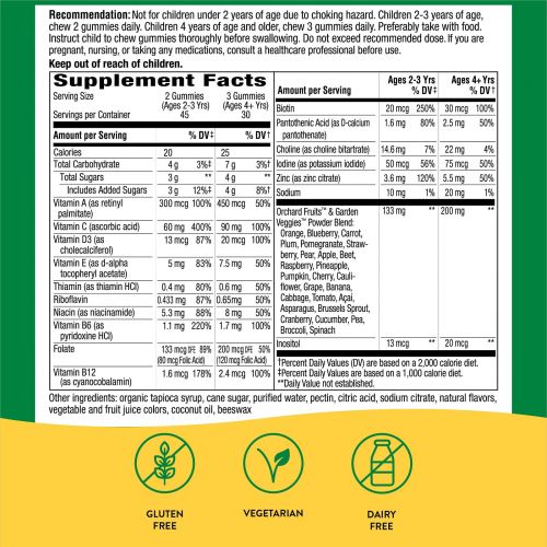 - Порошковые смеси Orchard Fruits™ и Garden Veggies™ (200 мг в 3 жевательных конфетах)