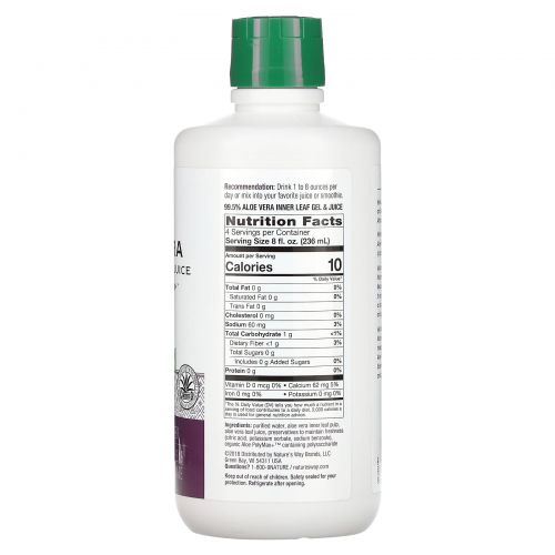 Описание товара Nature's Way, Алоэ вера, гель и сок для обработки листьев с алоэ полимаксом, 1 л (33,8 жидк. Унции)