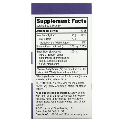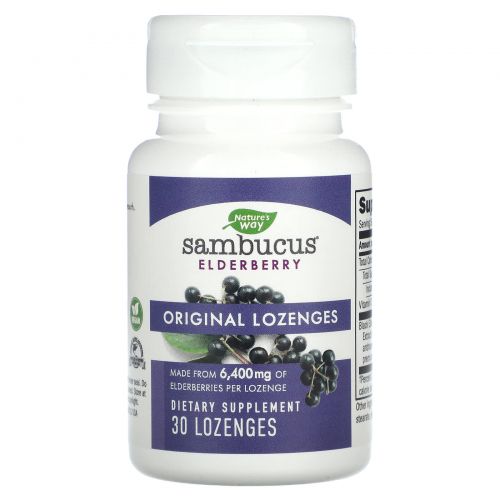 Описание товара Nature's Way, Бузина черная (Sambucus Black Elderberry), оригинальные пастилки, 30 пастилок