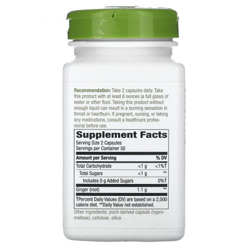 Описание товара Nature's Way, Ginger Root, 550 mg, 100 Vegan Capsules