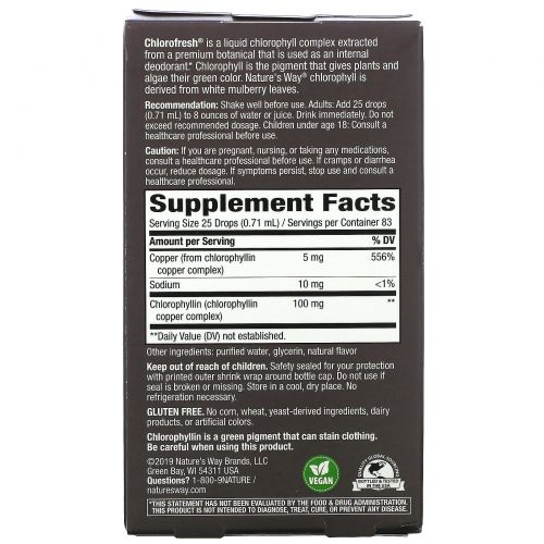 Описание товара Nature's Way, Хлорофреш, капли хлорофилла, натуральная мята, 59 мл (2 жидких унций)