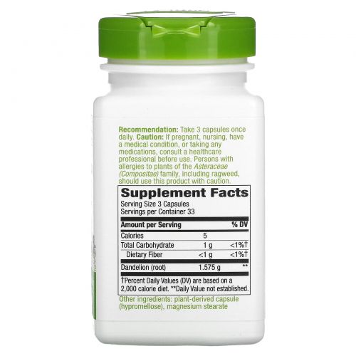 Описание товара Nature's Way, Корень одуванчика, 525 мг, 100 капсул