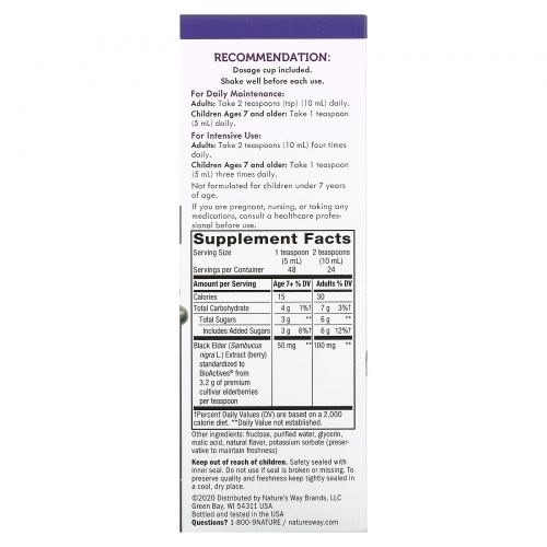 Описание товара Nature's Way, Original Sambucus, стандартизированный экстракт бузины, 8 жидких унций (240 мл)