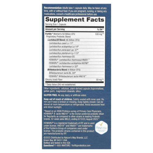 Формула Fortify Women's, 50 миллиардов КОЕ содержит 11 штаммов пробиотиков, предназначенных для поддержки разнообразия кишечника с пребиотиками, источника пищи для хороших бактерий.