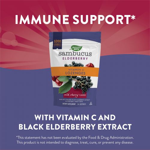 Описание товара Nature's Way, Sambucus Elderberry, пастилки с витамином C, со вкусом вишни, 24 пастилки