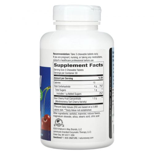Описание товара Nature's Way, Tart Cherry, Ultra Chewable, вишня, 400 мг, 90 жевательных таблеток