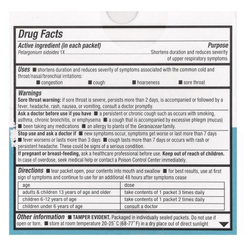 Разорвите пакетик, вылейте содержимое в рот и проглотите. Для достижения наилучших результатов принимайте при возникновении первых симптомов и продолжайте принимать в течение 48 часов после их прекращения.