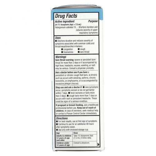 Пеларгония очитковая (Pelargonium sidoides) 1X облегчает протекание простуды, ослабляя ее симптомы, включая заложенность носа, кашель, боль в горле и охриплость голоса, а также раздражение в носу, горле и бронхах.