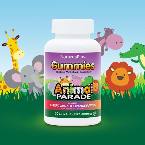 Описание товара NaturesPlus, Animal Parade, детские мультивитаминные жевательные мармеладки, ассорти, 50 жевательных мармеладок
