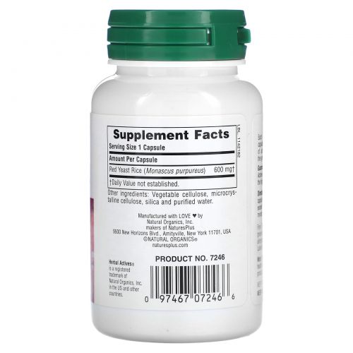Описание товара NaturesPlus, Herbal Actives, красный дрожжевой рис, 600 мг, 60 веганских капсул