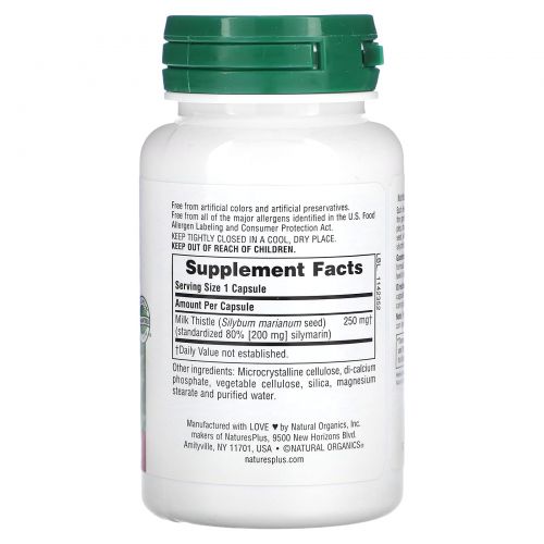 Описание товара NaturesPlus, Herbal Actives, расторопша, 250 мг, 60 веганских капсул
