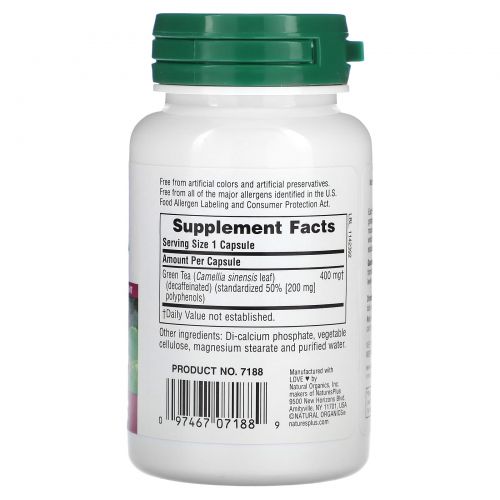 Описание товара NaturesPlus, Herbal Actives, зеленый чай, 400 мг, 60 веганских капсул