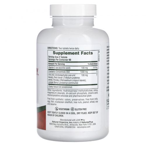 Описание товара NaturesPlus, Клюква с замедленным высвобождением, 1000 мг, 180 таблеток