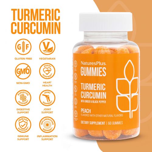 Куркумин, имбирь и черный перец содержат мощные антиоксиданты, которые способствуют здоровью сердечно-сосудистой системы, пищеварительной системы и суставов, а также обеспечивают иммунную поддержку. Куркумин NaturesPlus® с имбирем и черным перцем содержит все важные преимущества этих растительных компонентов в веселой и вкусной жевательной мармеладке!
