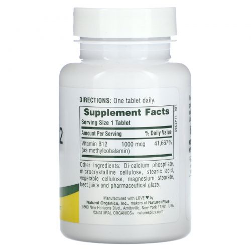 Описание товара NaturesPlus, Витамин B12, 1000 мкг, 90 таблеток