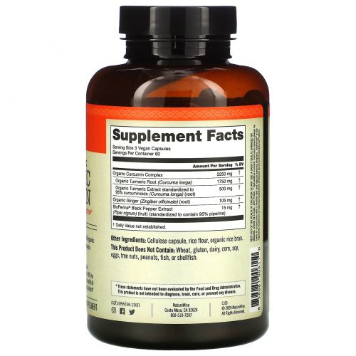 Описание товара NatureWise, куркумин из органической куркумы, 180 веганских капсул