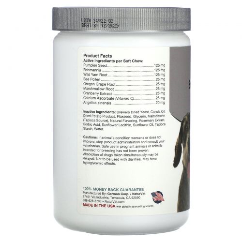 Описание товара NaturVet, Повышенное недержание мочи для пожилых людей, для собак, 120 жевательных таблеток, 360 г (12,6 унции)