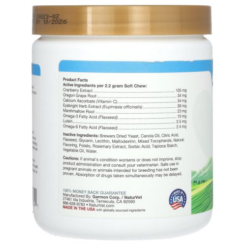 Описание товара NaturVet, Tear Stain Supplement Plus Lutein, 120 Soft Chews, 9.3 oz (264 g)