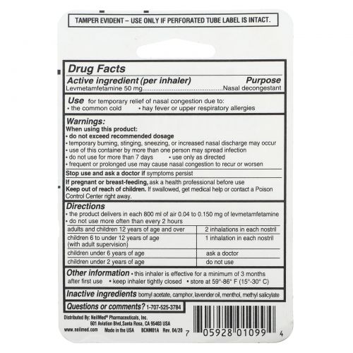 Описание товара NeilMed, SinuInhaler, противоотечное средство для носа, 198 мг (0,007 унции)