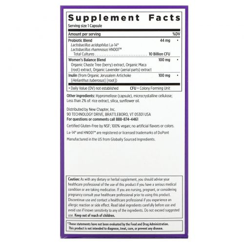 Описание товара New Chapter, Ежедневный пробиотик для женщин, 10 млрд КОЕ, 60 веганских капсул