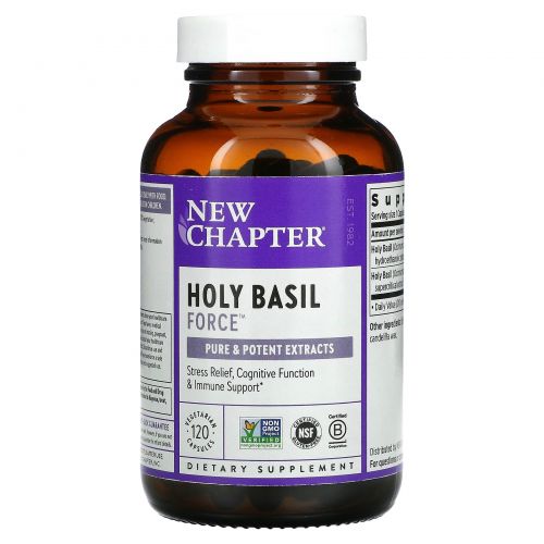 New Chapter, "Сила базилика священного", пищевая добавка на основе базилика священного, 120 капсул в растительной оболочке с жидкостью