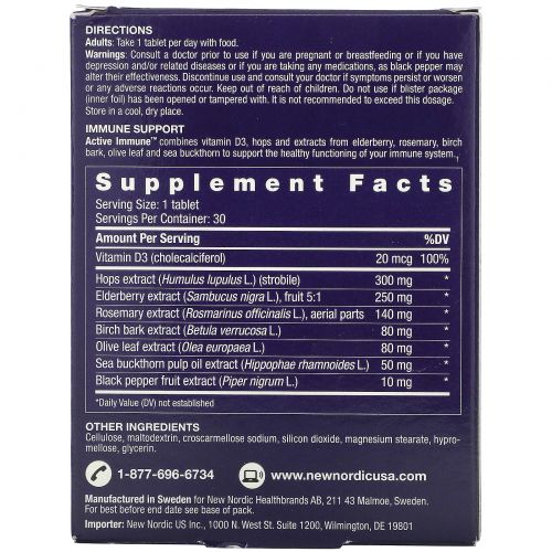 Описание товара New Nordic, Active Immune, Immune Support, 30 Tablets