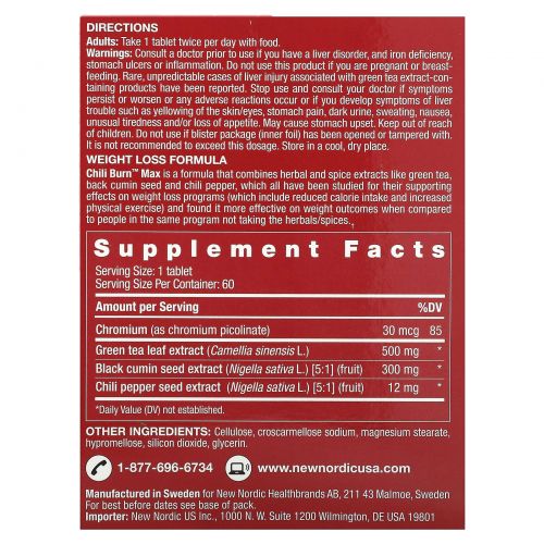 Описание товара New Nordic US Inc, Chili Burn Max, 60 таблеток