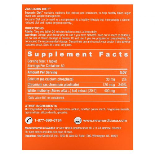 Описание товара New Nordic US Inc, Таблетки для похудения Zuccarin Diet, 60 таблеток