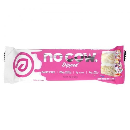 Описание товара No Cow, Protein Bar, Birthday Cake, 12 Bars, 2.12 oz (60 g) Each