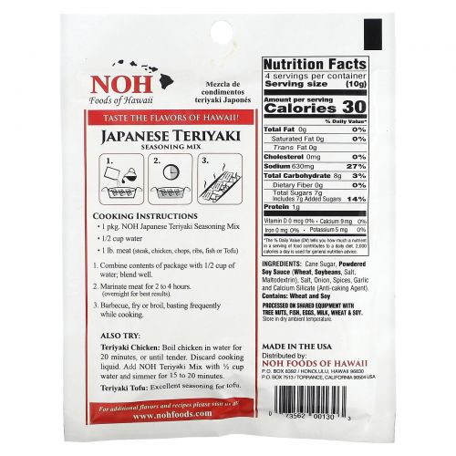 Описание товара NOH Foods of Hawaii, Japanese Teriyaki Seasoning Mix, 1 1/2 oz (42 g)