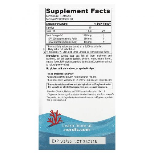 Весь рыбий жир Nordic Naturals имеет форму триглицеридов и отлично усваивается.