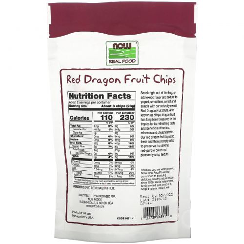 Описание товара Now Foods, Настоящая пища, чипсы из питайи, 2 унции (57 г)