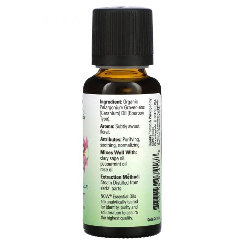 Описание товара Now Foods, Органические эфирные масла, герань, 30 мл (1 жидк. унция)