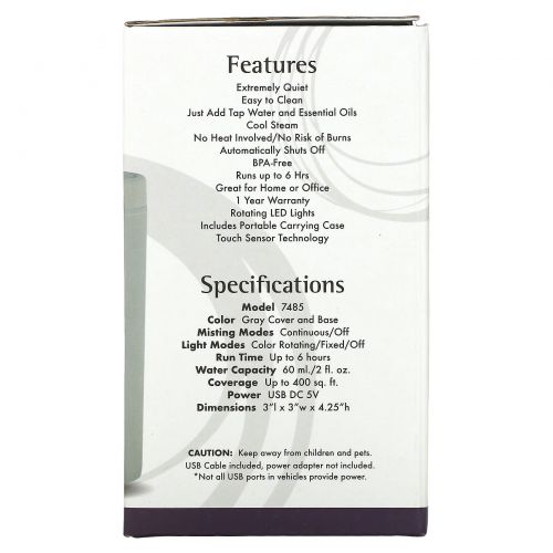 Портативный ультразвуковой диффузор от NOW Solutions сочетает научные инновации с давними традициями ароматерапии, не содержит бисфенол-А, использует только водопроводную воду и ваши любимые эфирные масла. Вместо нагревания этот современный диффузор использует высокочастотные ультразвуковые вибрации для создания мелкодисперсного пара, что помогает сохранить цельность эфирных масел и их полезные свойства. Благодаря функции автоматического отключения и возможности беспрерывной работы в течение 6 часов этот портативный диффузор превращает ароматерапию в приятный бриз.