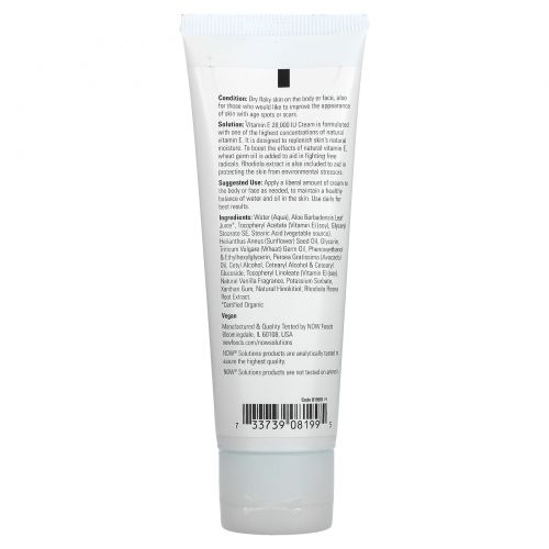 Описание товара Now Foods, Решения, Крем с витамином Е, 28 000 МЕ, 4 жидких унции (118 мл)