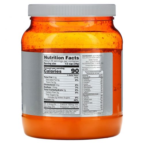 Изолят соевого белка NOW® Sports — это отличный растительный источник высококачественного полноценного белка с превосходным аминокислотным составом. Соевые продукты, включая соевый белок, содержат фитоэстрогены натурального происхождения и полезные протеины, такие как генистеин и даидзеин. Обеспечьте свой организм базовым строительным материалом с помощью высококачественного изолята соевого белка NOW® Sports.