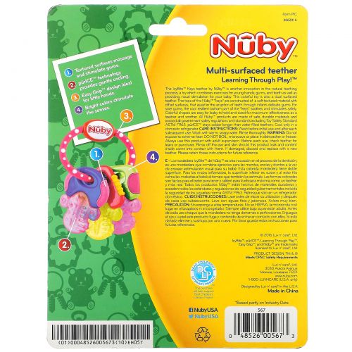 Описание товара Nuby, Soothing Teether, Icy Bite Keys, 3+ Months, Perfectly Pink, 1 Count