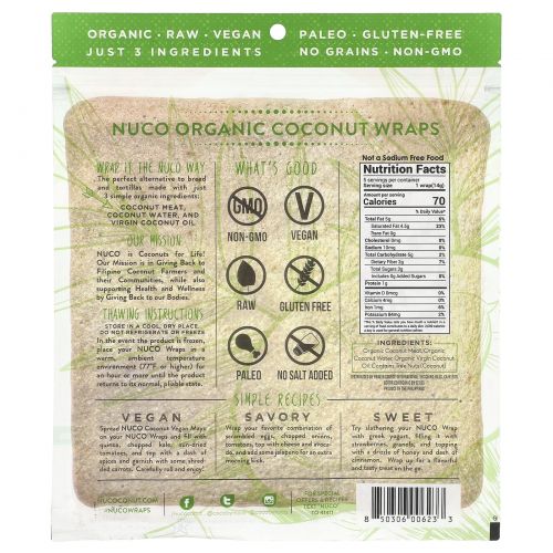 Описание товара NUCO, Organic Coconut Wraps, Original, 5 Wraps (14 g) Each