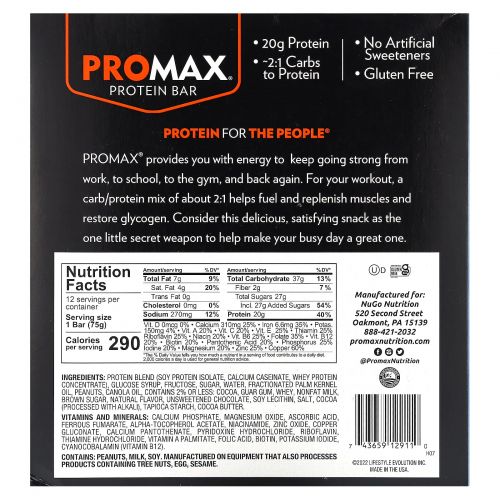 Описание товара NuGo Nutrition, Promax Protein Bar, протеиновый батончик, тесто для печенья с шоколадной крошкой, 12 шт. по 75 г (2,64 унции)