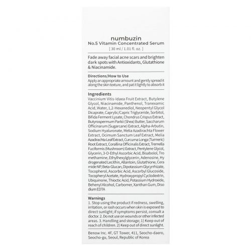 Описание товара Numbuzin, концентрированная сыворотка с витамином № 5, 30 мл (1,01 жидк. унции)