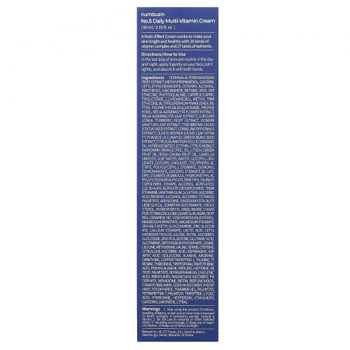 Описание товара Numbuzin, крем с мультивитаминами для ежедневного применения, 60 мл (2,02 жидк. унции)