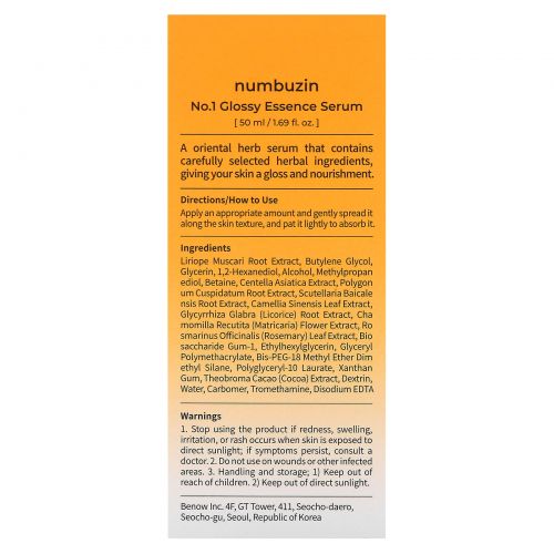 Описание товара Numbuzin, сыворотка-эссенция для блеска № 1, 50 мл (1,69 жидк. унции)
